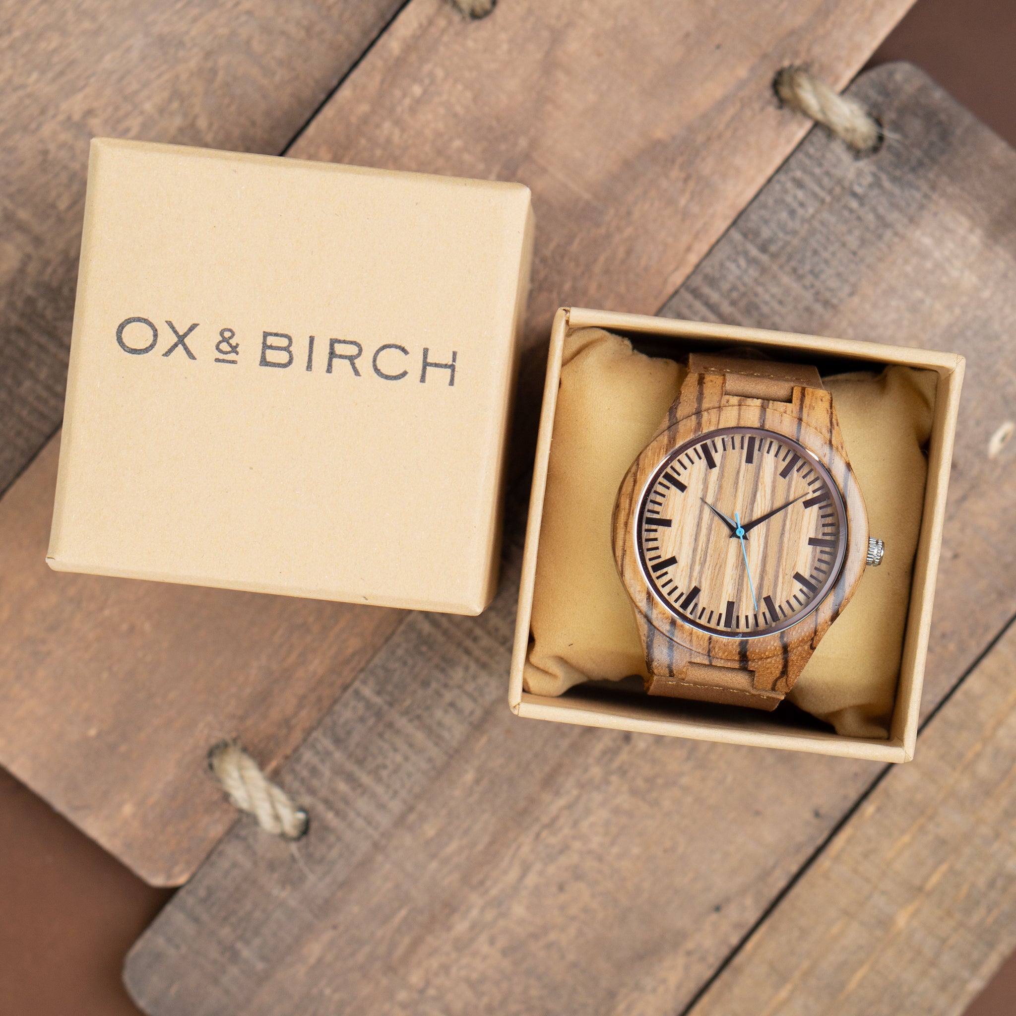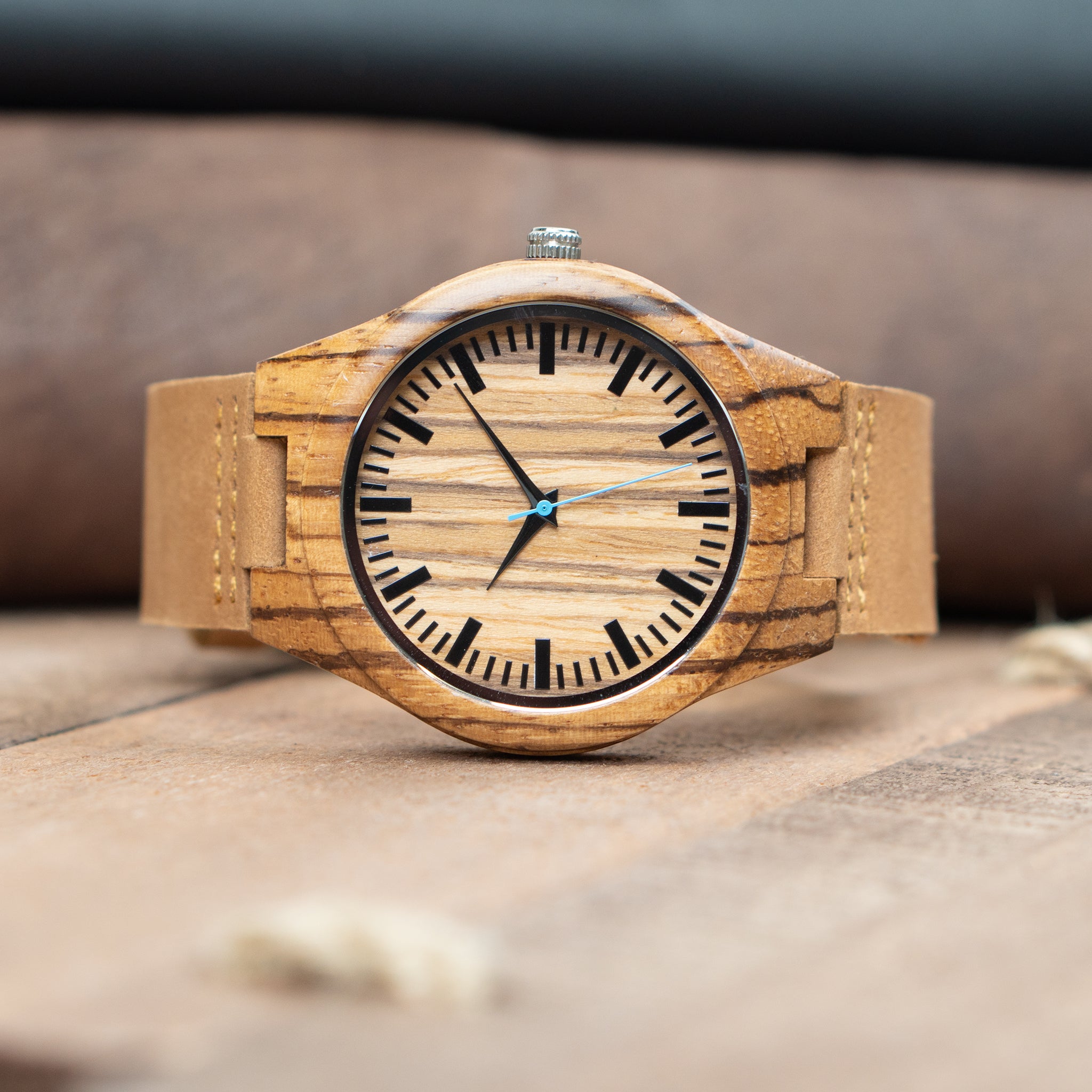 Forest Blue is the cousin to the Forest and Forest Red wooden watches, made from natural zebra wood and has a genuine leather band that is soft and comfortable. Features unique blue second hand for unique, subtle accent.